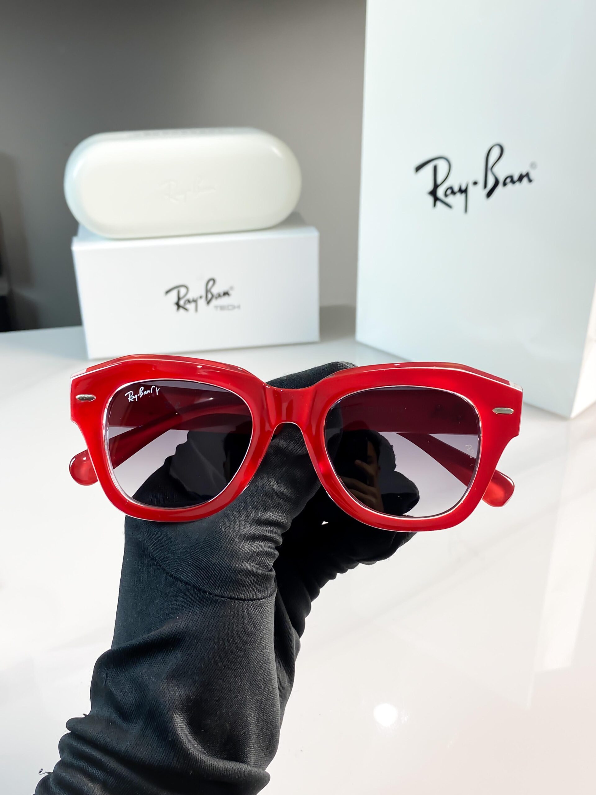 Rayban red black 2186